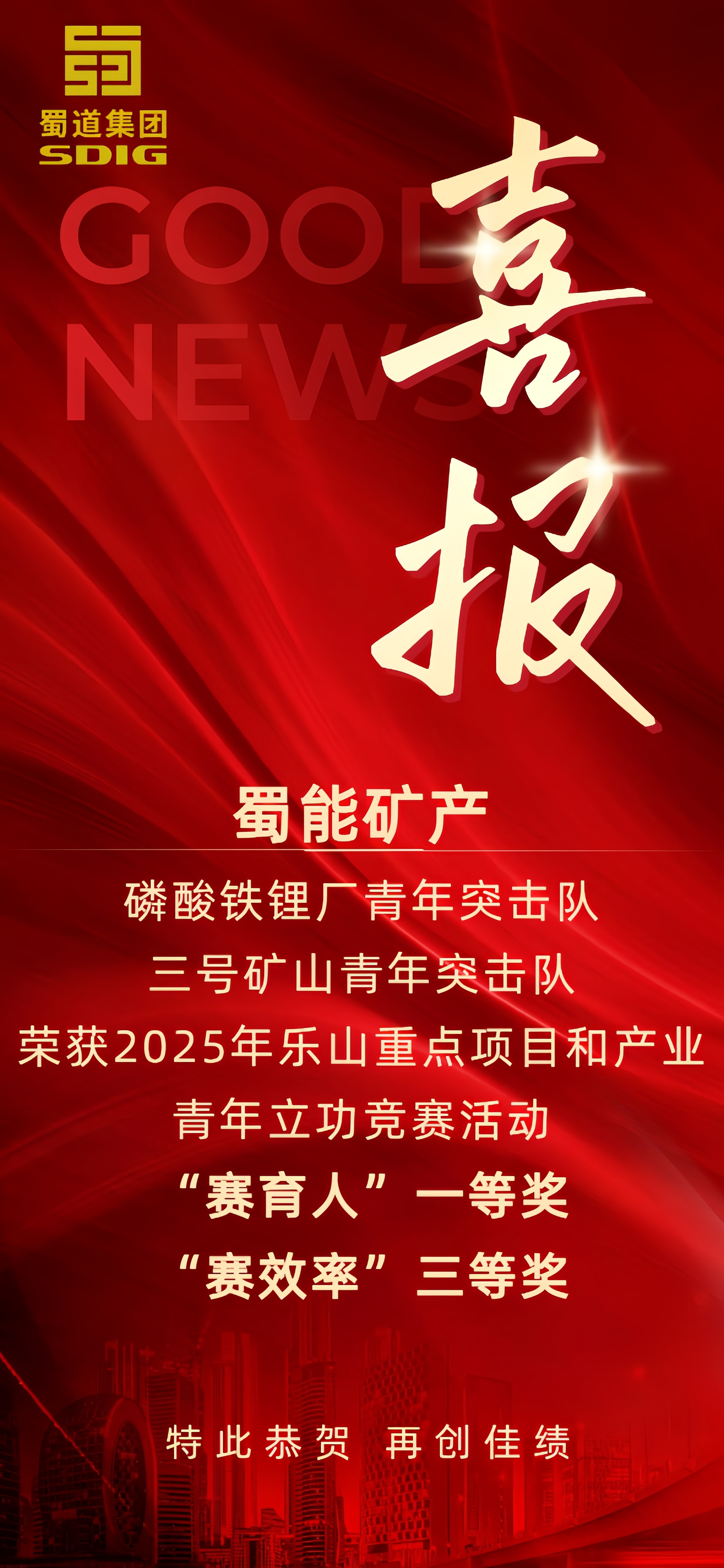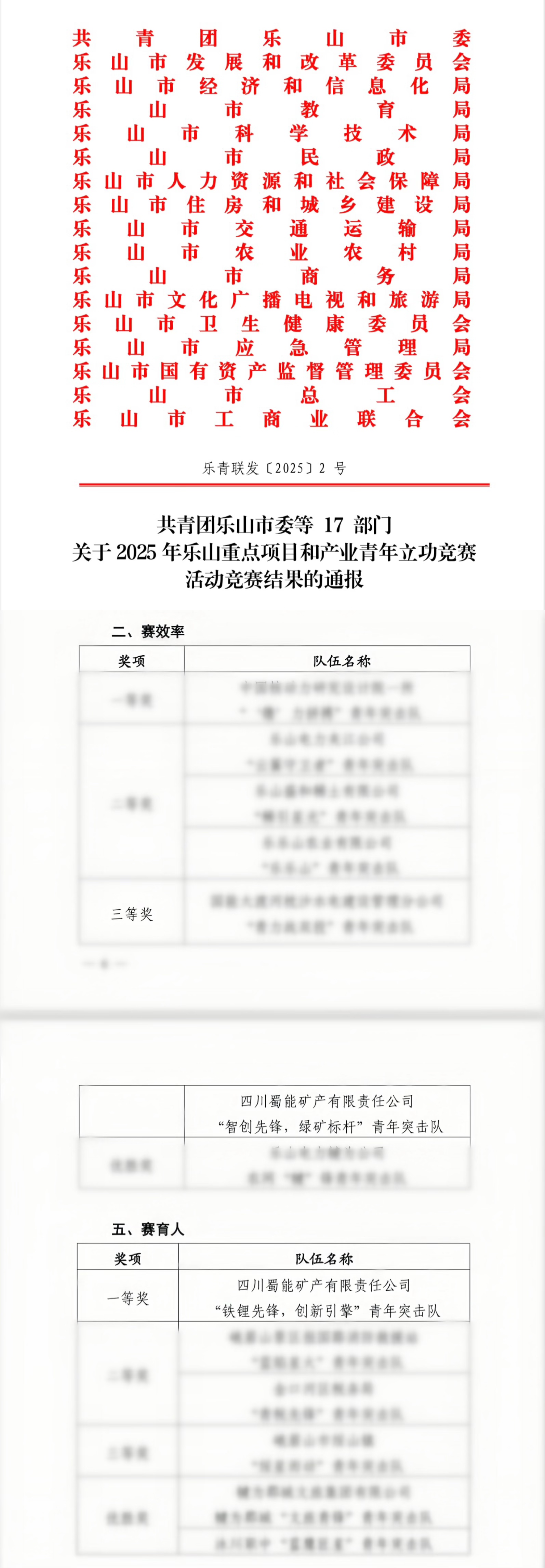 喜报!williamhill中文官网荣获2025年乐山重点项目和产业青年立功竞赛活动“赛育人”一等奖、“赛效率”三等奖